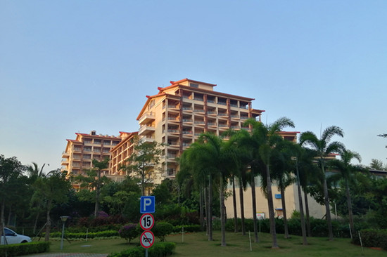 6公里行车10多分钟车程就到了我们的度假基地——五星东方西海岸福安候鸟旅居基地。时尚不失风情的一栋建筑物掩映在挺拔的椰子林下,显得静怡、豁达,欧式大堂、富丽堂皇彰显皇家气派,热情的前台接待细心地给我细说酒店的各项服务功能,宾至如归,身心温暖。